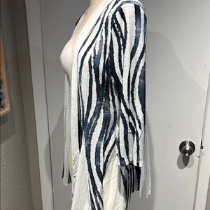 This stylish blouse features a striking zebra print in navy blue black and white, perfect for adding a touch of elegance to any outfit.