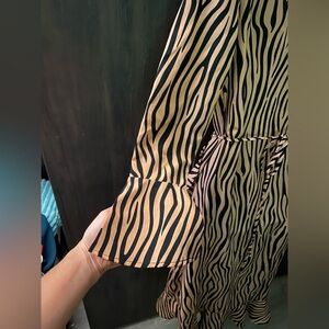 Step out in style with this elegant zebra print wrap dress. Perfect for any occasion, this dress features a striking black and tan pattern. The wrap design offers a flattering fit, making it a must-have addition to your wardrobe.