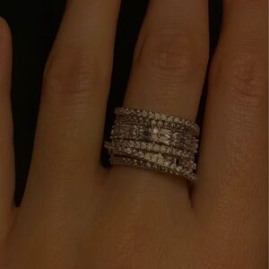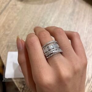 This stunning silver multi-band ring adds a touch of elegance to any outfit. Perfect for any occasion.