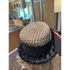 Elegant and Fun Chanel Style Boater Straw Hat Small M