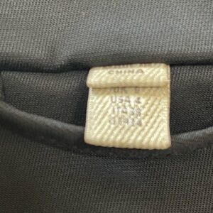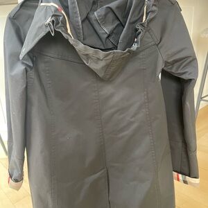 Elegant black fabric with tan label detail. Classic Burberry style.