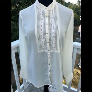 Beautiful elegant blouse in cream by Liz Claiborne in size 10. 100% polyester. No rips or stains.