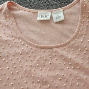 This shirt is very soft to the touch and the pearls are very elegant so you could wear it with dress pants or a skirt to a dressy event or you could dress it down with jeans.