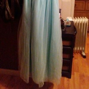Worn only once, tule material below the waist. They both have a satin slip underneath