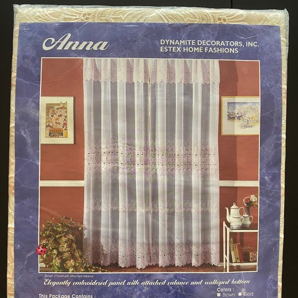 Elegantly embroidered panel with attached valance and scalloped bottom