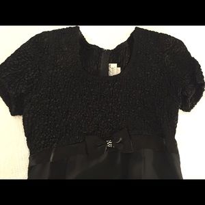 This dress is a classic! Vintage vibe with scoop neck, sequins, and a delicate bow with rhinestones. Empire waist with stretch top and a double layered hem for added flair. Worn twice and dry cleaned. EUC.