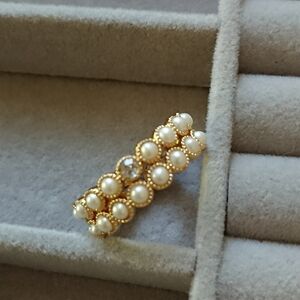 How to make a statement by barely lifting a finger this pretty ring featuring rows of golden pearls.
