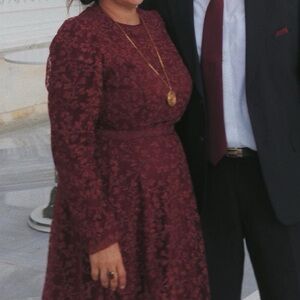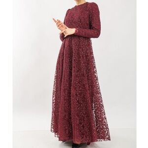 Elegant formal modest gown Red burgundy sparkly Lace Women Dress sz 8