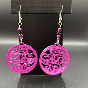 These pieces are made to order and printed a pair at a time in our 3D printers. A nozzle dispenses PLA Filament at a high temperature to create a 3D print layer by layer. The print is created from the bottom up and details of this process can be seen in the finished product. If you look closely at our earrings, you may see lines that are indicative of the path the nozzle traveled to create the piece. Because of this, 3D Prints are NOT to be compared to mass or commercially produced plastic pieces. Each one is unique, susceptible to variation, and shows distinct signs of its creation process that we believe adds character and sacredness . Hope you enjoy my homemade jewelry.