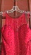 Stunning red silk dress with intricate beading will absolutely knock 'em dead wherever you wear it. The straps need to be reinforced, the weight of the beading is starting to tear- priced accordingly.