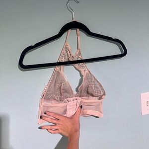 This elegant baby pink lace bralette offers a delicate and stylish look. Perfect for layering or wearing on its own, it combines comfort with a touch of sophistication. Hardly worn, new condition