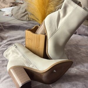 Step out in style with these elegant cream ankle boots. Perfect for any occasion, these boots offer both comfort and sophistication.