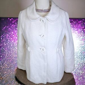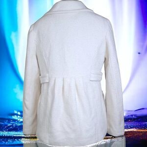 Elegant pale cream long wool textured jacket