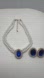 This stunning jewelry set features a double-strand pearl necklace and matching earrings, each adorned with a striking blue gem. Perfect for adding a touch of elegance to any outfit.