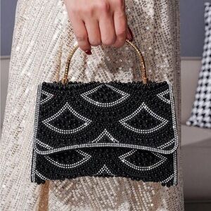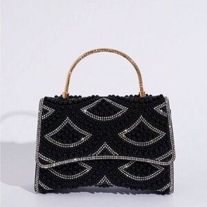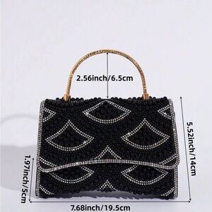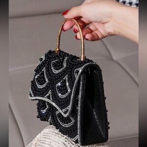 Elegant pearls and rhinestones magnetic closure mini square bag black