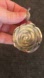 This eye-catching pendant is dramatic yet delicate, perfect for any occasion. Rose medallion is carved from abalone shell and framed with silver. Unique hinged bail so it can be worn with nearly any type of chain or necklace. Approximately 2 inches in diameter. Total hanging length including bail about 2.5 inches.