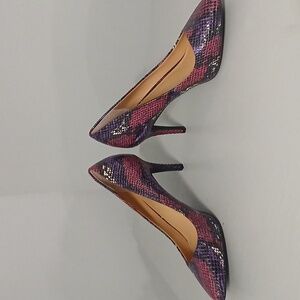 Elegant snake print Purple and Black Women's Heels, new without box size 8