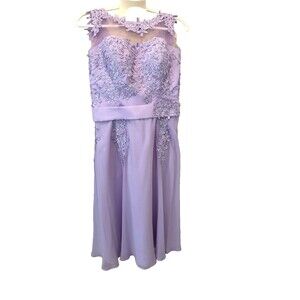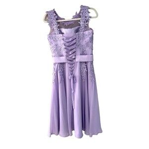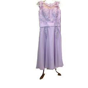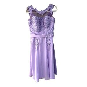 Elegant special occasion dress in Lovely Lilac color W lace for evening, Sz 8