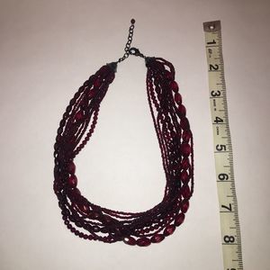 You will ❤️ this necklace as much as I have! It’s an eye-catching, multi-layer, very stylish burgundy beaded necklace that pairs well with blacks, creams, and burgundy tops. I have received so many compliments on this piece. It’s so very versatile and can be worn with dresses, blouses, and even jeans. Measurements are included for reference purposes only and may not be exact.