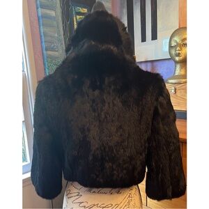 This luxurious vintage black fur jacket is in amazing condition! It is so soft with the fur lining continuing to the inner lapel. The three-quarter sleeve adds an extra element of high-end fashion! It is perfect for any occasion. Stay warm and stylish with this elegant piece.