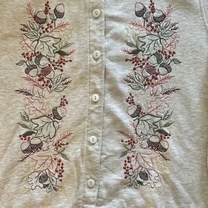 This stylish cardigan features intricate embroidery, adding a touch of elegance to your outfit. The button-up design ensures comfort and versatility.