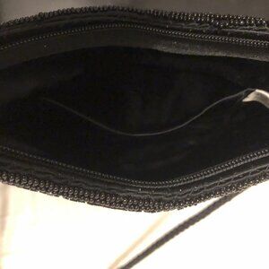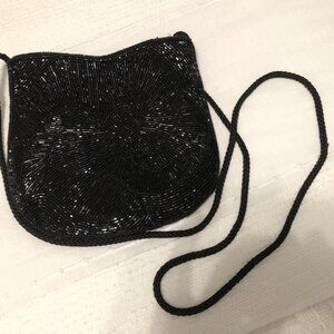 Women’s finely beaded evening bag in black, floral design beading, 7” x 7”, zipper closure, Preowned, Like New, used only twice.