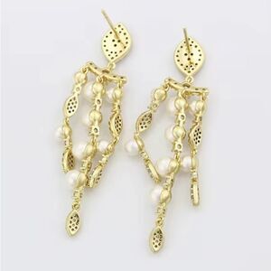 New, 14K Gold Plated , These stunning gold and silver drop earrings feature elegant pearls and sparkling accents, perfect for any occasion. Highest quality lab created multi-faceted simulated Diamonds to beautifully shine, sparkle and reflect light like mined Diamonds , Add a touch of elegance Perfect for any occasion.
