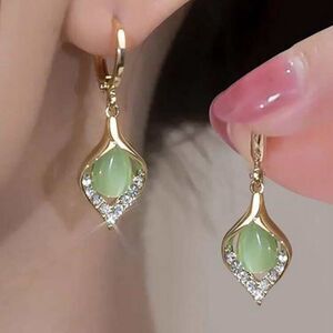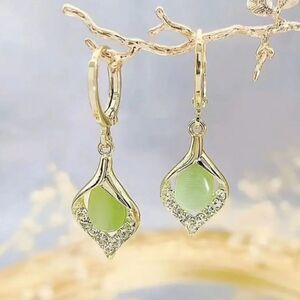 🔅🆕🔅 Elegant 14k Gold Plated Simulated Green Opal Drop Earrings✨