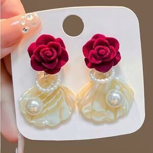 π ππ πΉ ElegantβBaroque Shell Pearl Rose Earringsβπ πΉπ