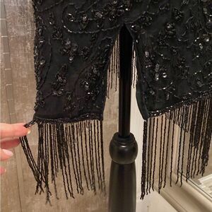 Elegant Black Beaded Fringe Dress, US2