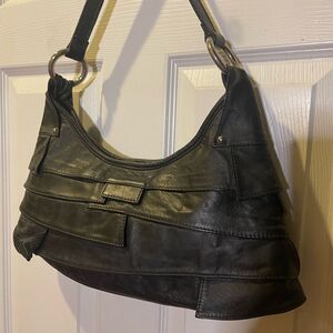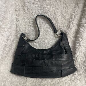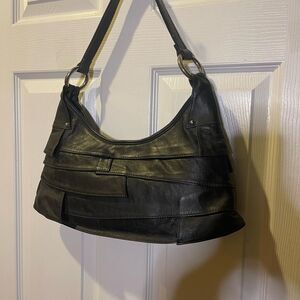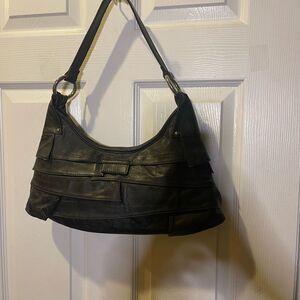 Elegant Black Leather layer Shoulder Bag with silver tone hardwares.