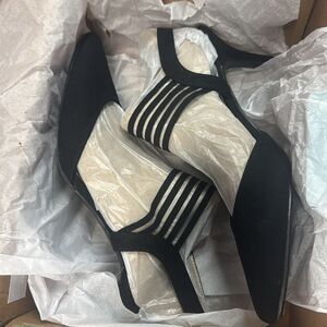 Step out in style with these elegant black strappy heels. Perfect for any occasion, these shoes offer both comfort and sophistication.