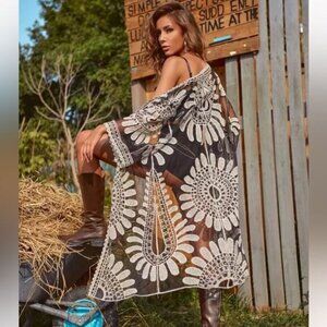 Step out in style with this elegant black and cream floral swim cover-up. Perfect for adding a touch of sophistication to your beachwear. Lightweight and breathable, it's ideal for sunny days. one size fits most