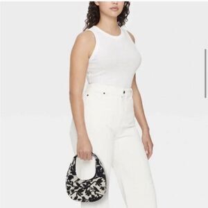 This stylish women's bag features a chic black floral design on a white background, perfect for any occasion. Its elegant look makes it a versatile accessory for your wardrobe.