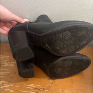 Step out in style with these elegant black ankle boots. Perfect for any occasion, these boots offer both comfort and sophistication. Elegant Black Ankle Boots size 7 EUC