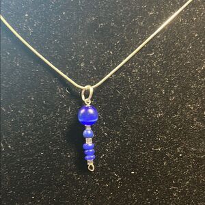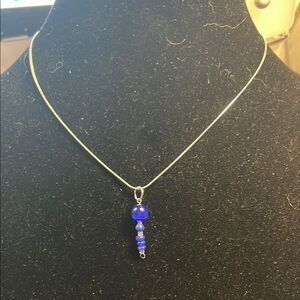 This elegant necklace features striking blue beads, perfect for adding a pop of color to any outfit. Its simple yet sophisticated design makes it a versatile accessory for any occasion.