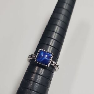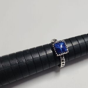 This elegant ring features a striking blue acrylic stone set in a silver tone band. Perfect for adding a touch of sophistication to any outfit.