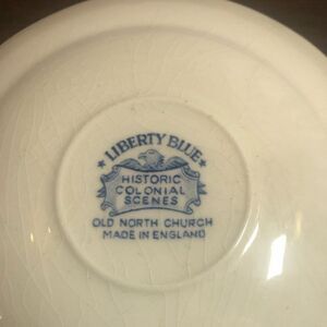 This beautifully crafted dinnerware plate features a stunning blue and white color palette, highlighted by a detailed scenic illustration at its center. The intricate floral border adds a touch of sophistication, making it an ideal choice for enhancing any dining experience. Teacup saucer. 5-3/4” diameter. Replacement. Some crazing on bottom