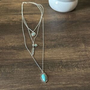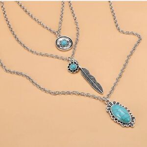 New, Includes only the necklace that’s 3 layered, This elegant layered necklace features a stunning combination of silver and blue tones, perfect for adding a touch of sophistication to any outfit. The intricate design and delicate chain make it a versatile accessory for any occasion.