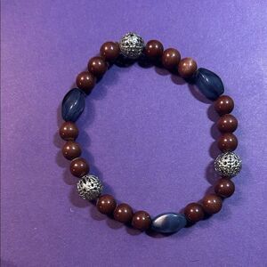 This elegant bracelet features rich brown beads complemented by striking silver accents. Perfect for adding a touch of sophistication to any outfit. G307