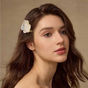 Beautiful cream floral brooch with a pearl accent. Perfect for adding a touch of elegance to any outfit.