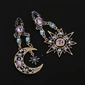 🔅🆕🔅 🌙 💜 Elegant Crystal Sun Moon Drop Long Earrings ☀️🌙✨