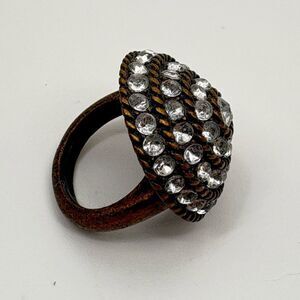 This stunning ring features a unique design with sparkling crystals set in a bronze-tone band. Perfect for adding a touch of elegance to any outfit.
