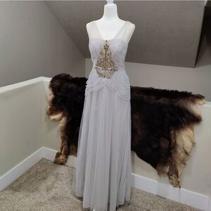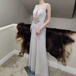 Elegant Embroidered & Beaded, Chiffon & Tulle Pleated Evening Dress