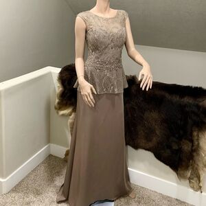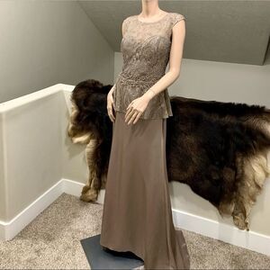 High quality gown. The upper body is a stretchy delicate embroidered floral lace, with all over crystal beads, sewn by hand. Stretchy premium satin skirt. Suitable for all kinds of formal gatherings.