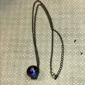 Discover the beauty of the universe with this elegant galaxy pendant necklace. Featuring a stunning blend of blue and purple hues, this piece is perfect for adding a touch of cosmic charm to any outfit. Approximately 11.5”