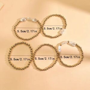 Elegant Gold Beaded Faux Pearl 5 Piece Bracelet Set