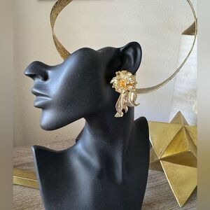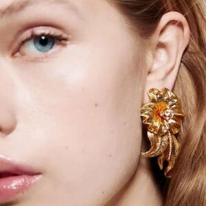 These stunning gold floral earrings add a touch of elegance to any outfit. Perfect for special occasions or everyday wear.