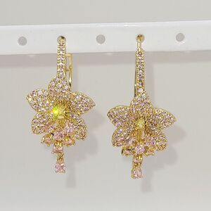Add a touch of elegance with these stunning goldtone floral rhinestone earrings. Perfect for any occasion, these earrings feature intricate flower designs that sparkle beautifully.