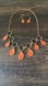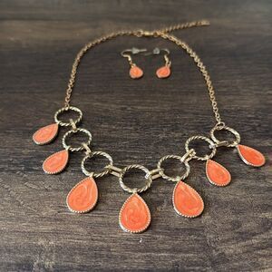 New, This stunning jewelry set features a gold chain with vibrant orange teardrop accents. Perfect for adding a pop of color to any outfit.